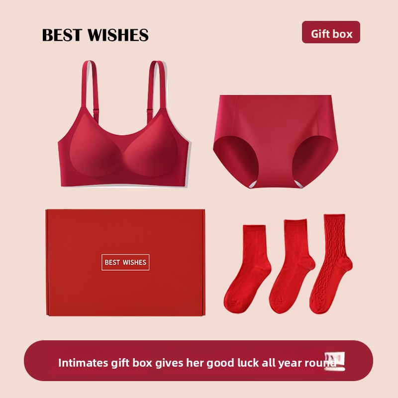 Red Zodiac Year Underwear for Women Red Gift Box Small Chest Push-Up Enhancing Wireless Wedding Bra Set