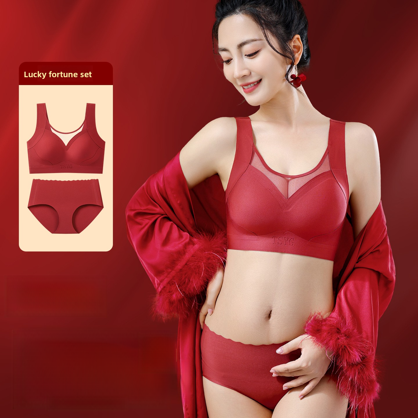 Red Underwear Set for Women in Their Zodiac Year, Small Chest Push-Up