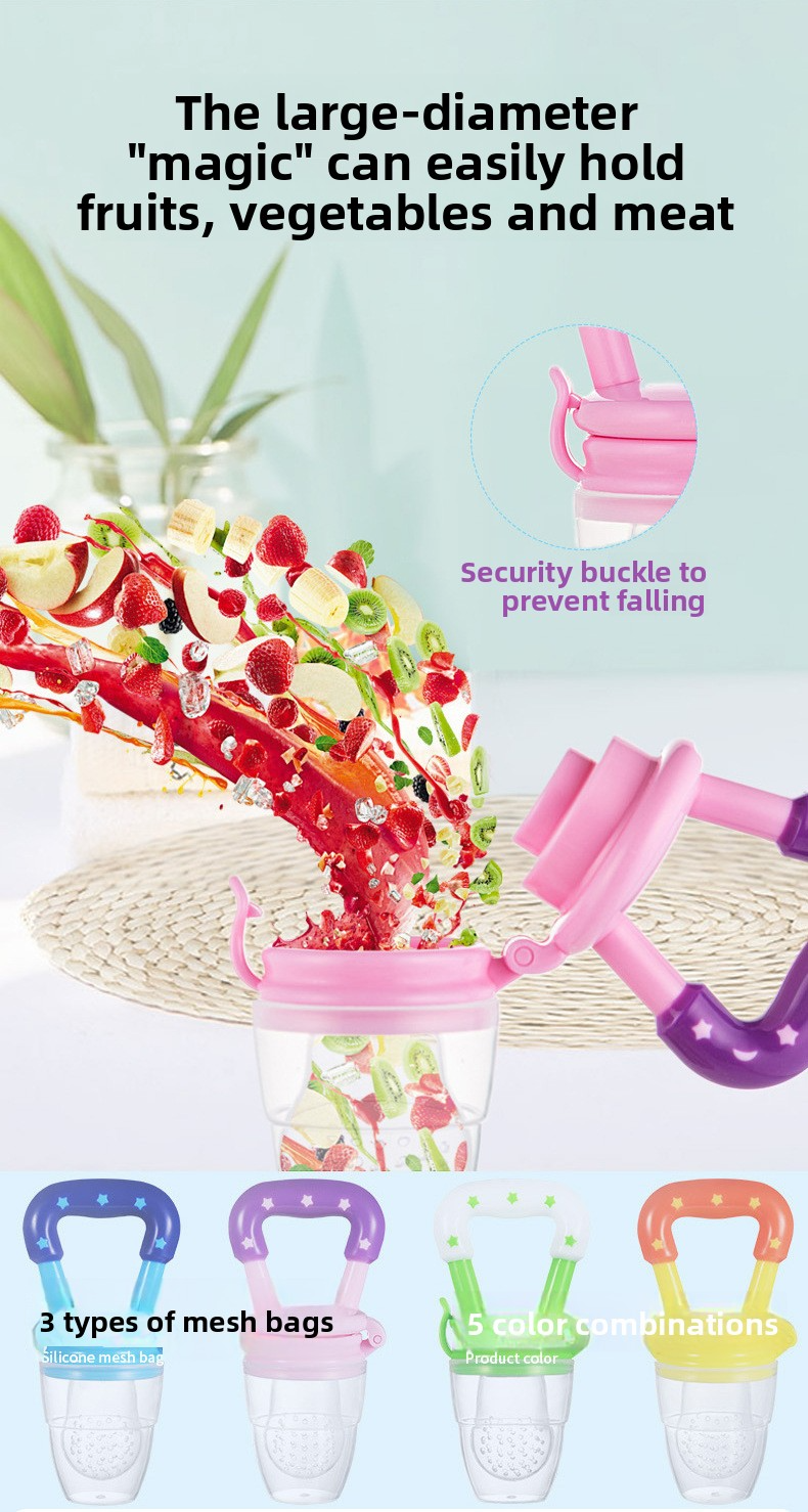 Baby Fruit and Vegetable Silicone Pacifier Teether, Baby Teething Toy, Fruit and Vegetable Mesh Bag, Baby Fruit and Vegetable Feeder