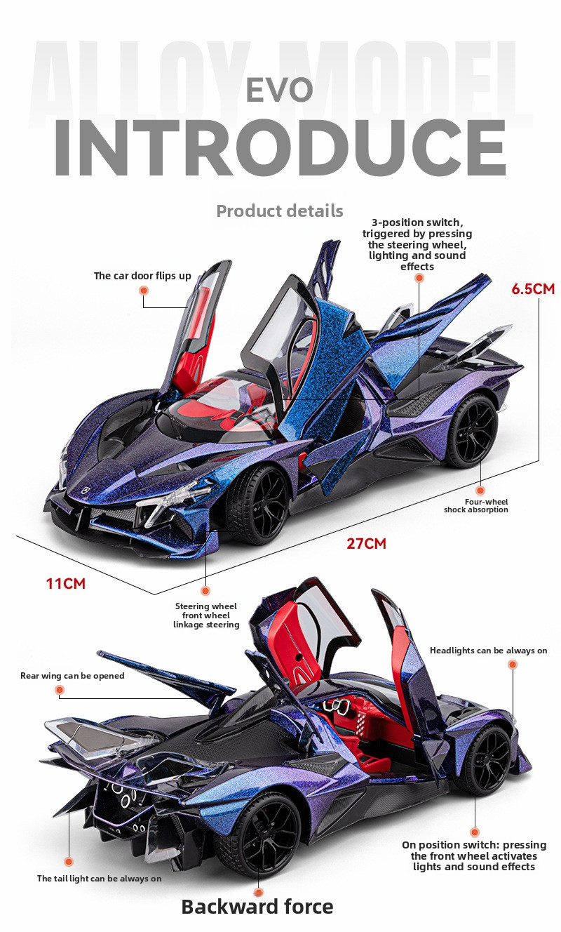 Chezhi 1:18 Apollo EVO Alloy Sports Car Model (Sound/Light/Pull Back/Multi-Door)