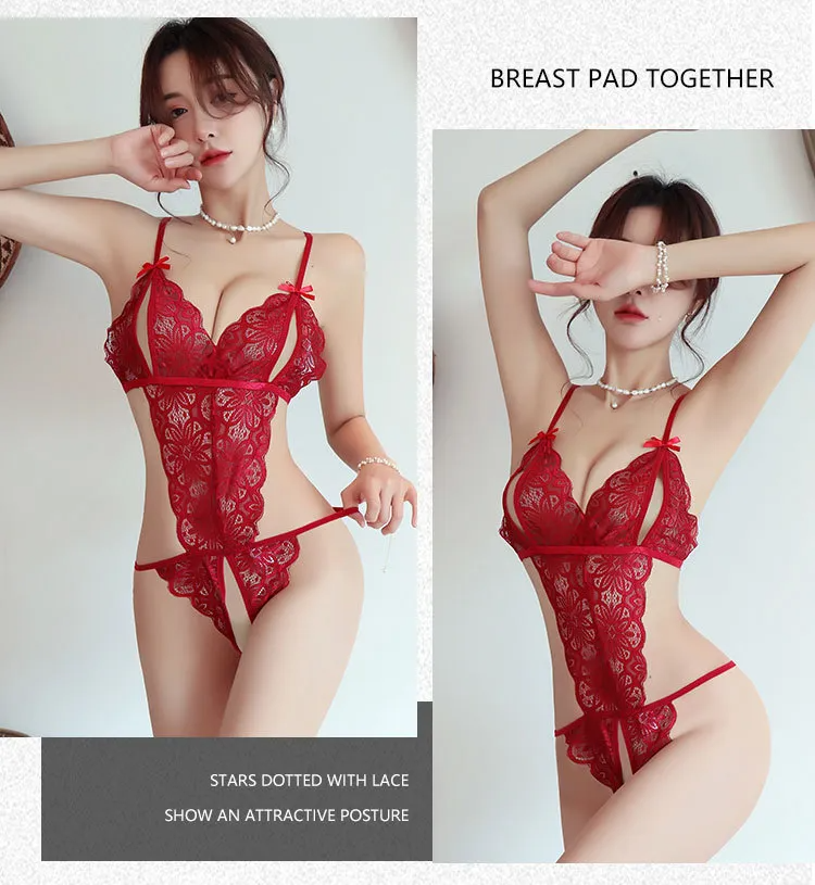 Sexy Lingerie No-Take-Off Open Crotch One-Piece Nightdress Sexy Lace Strap