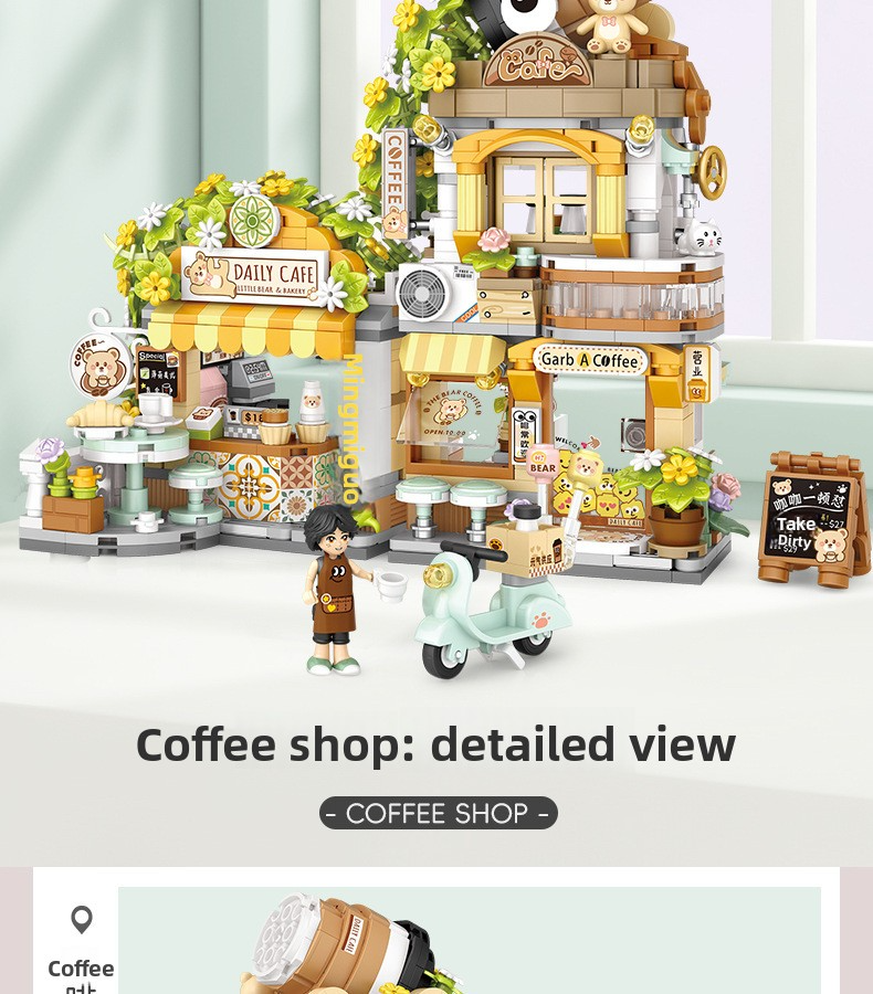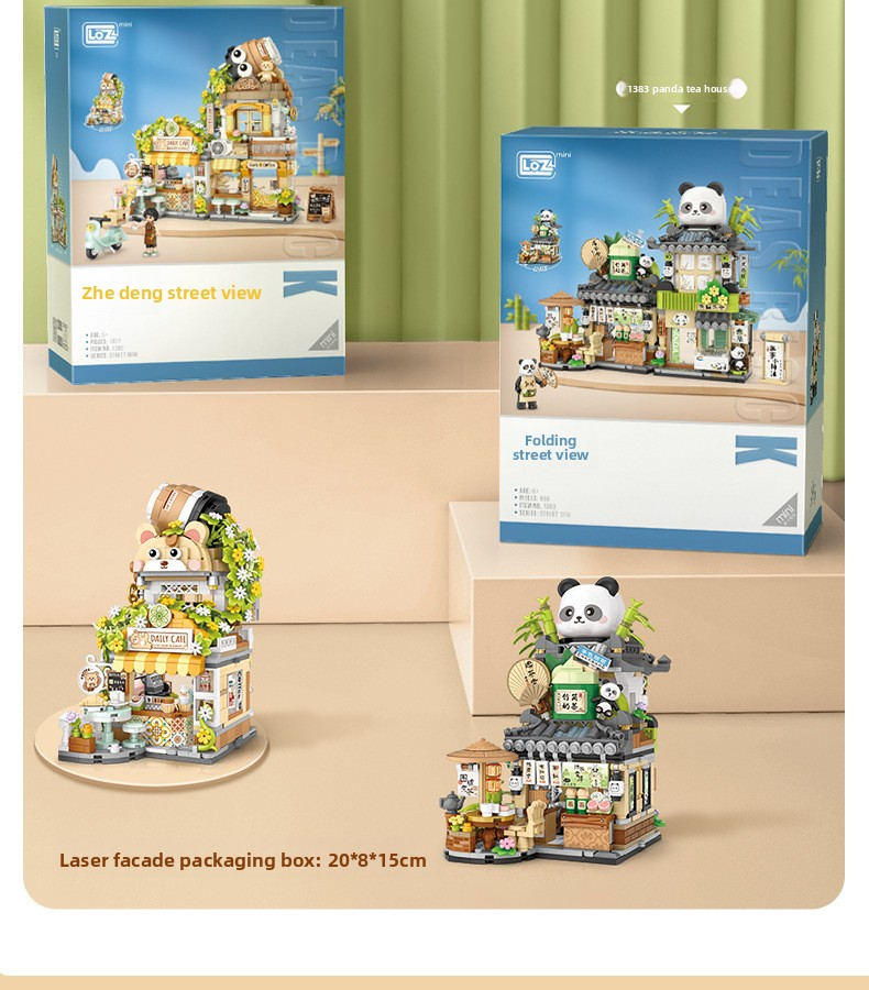 Loz Blocks: Panda Tea House/Bear Coffee/Kid's Foldable Street View (Gift)