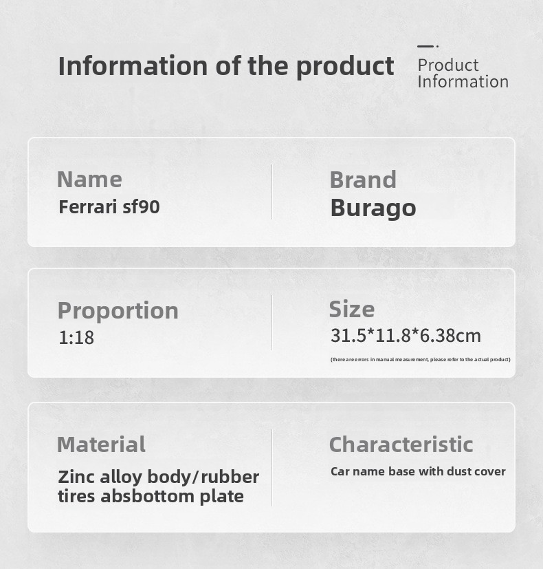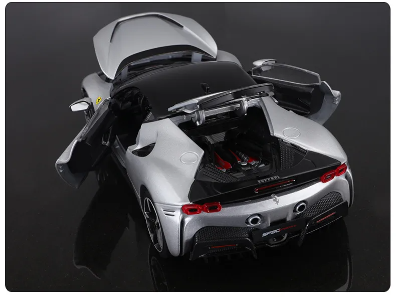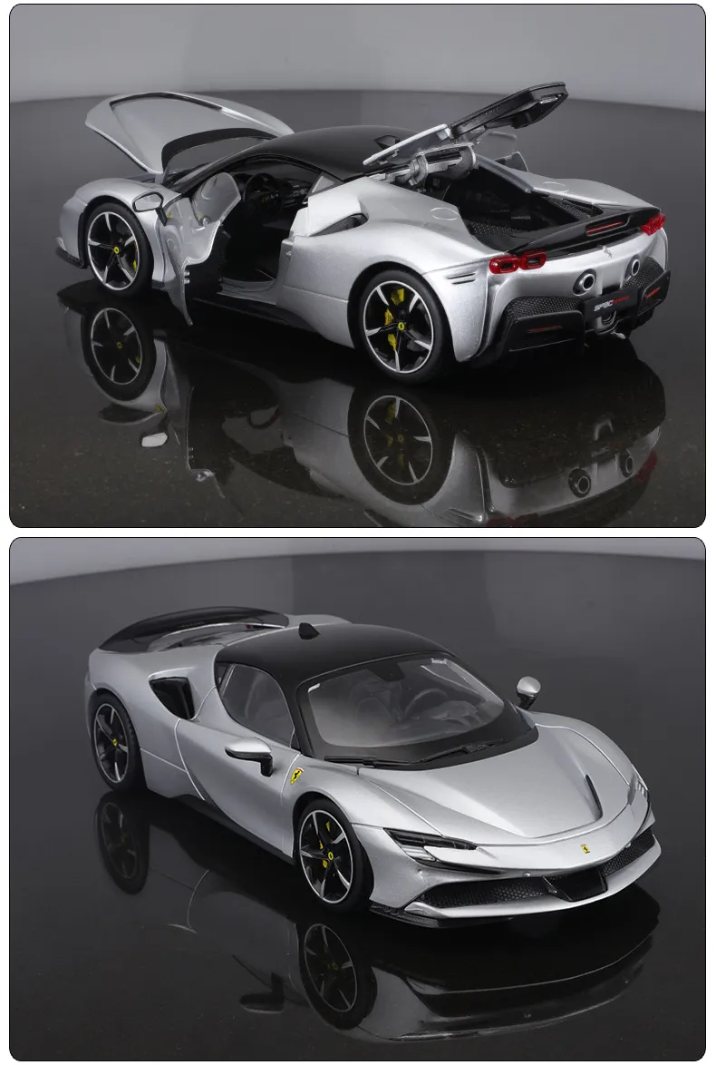 Bburago Bimeigao 1:18 SF90 Deluxe Alloy Car Model, Metal Car Model Decoration, Boys' Toy Car