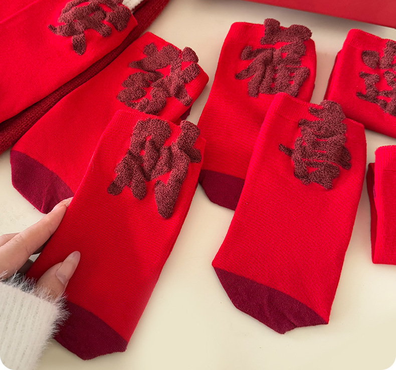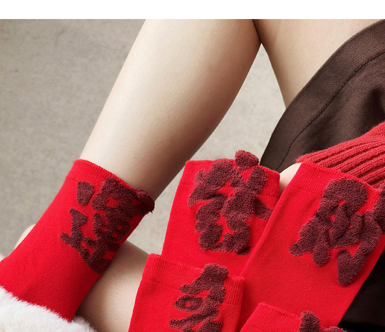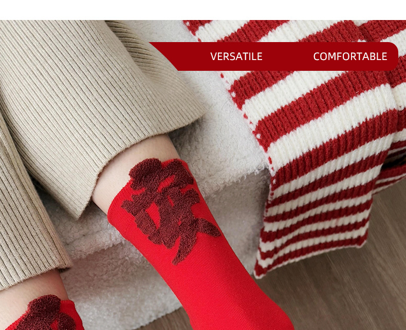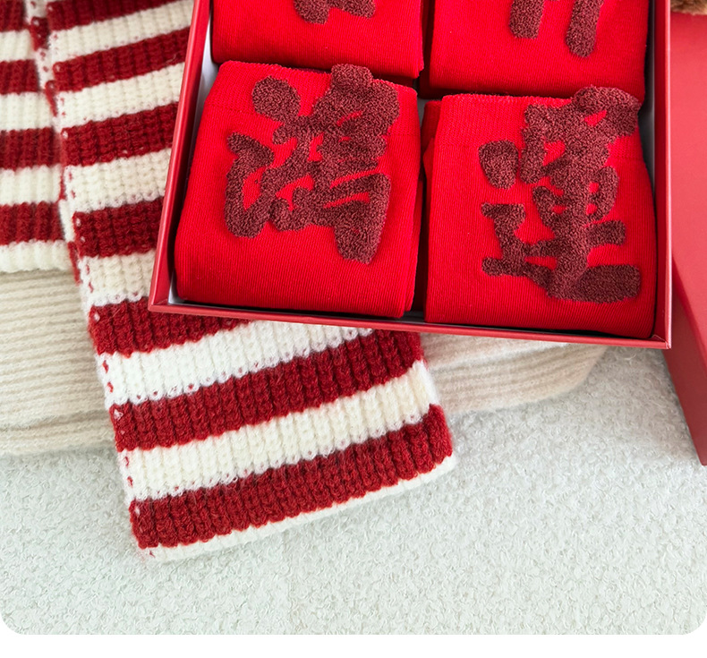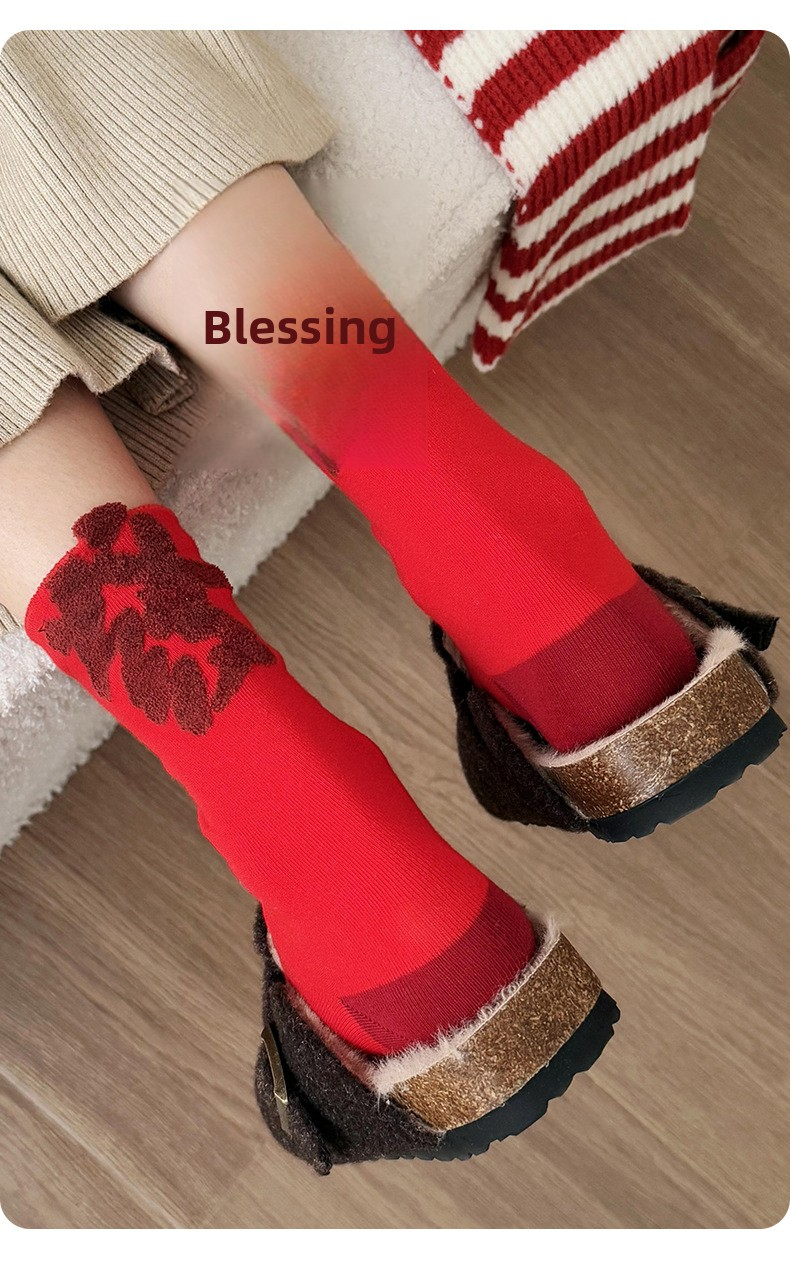 【Buy one, get three】Red Socks Women Festive Prosperity Thickened Mid-Calf Socks