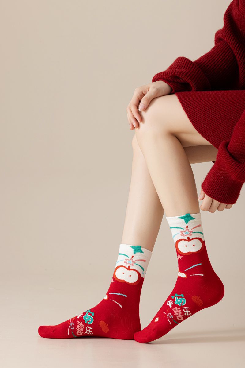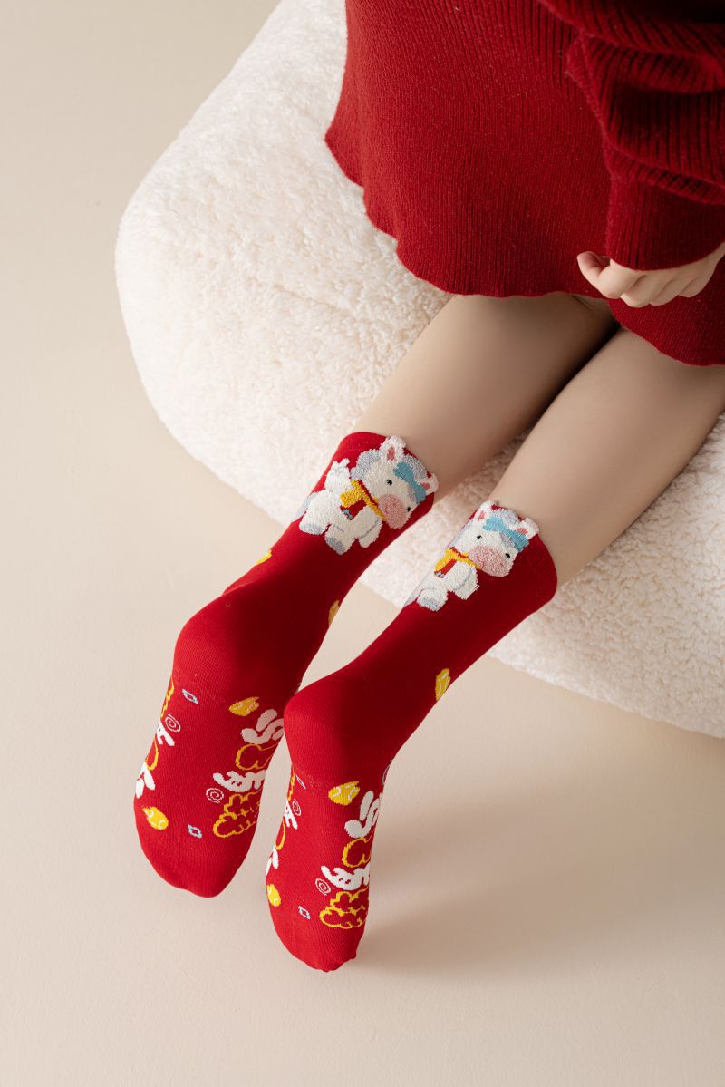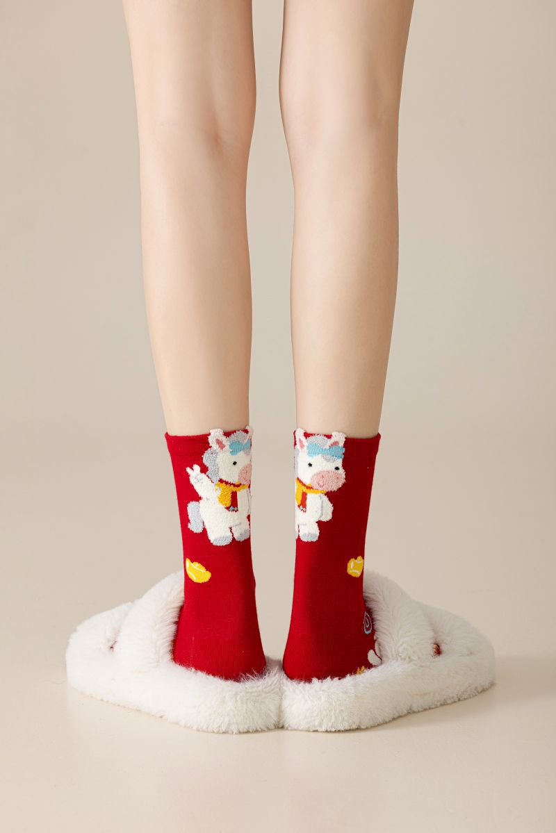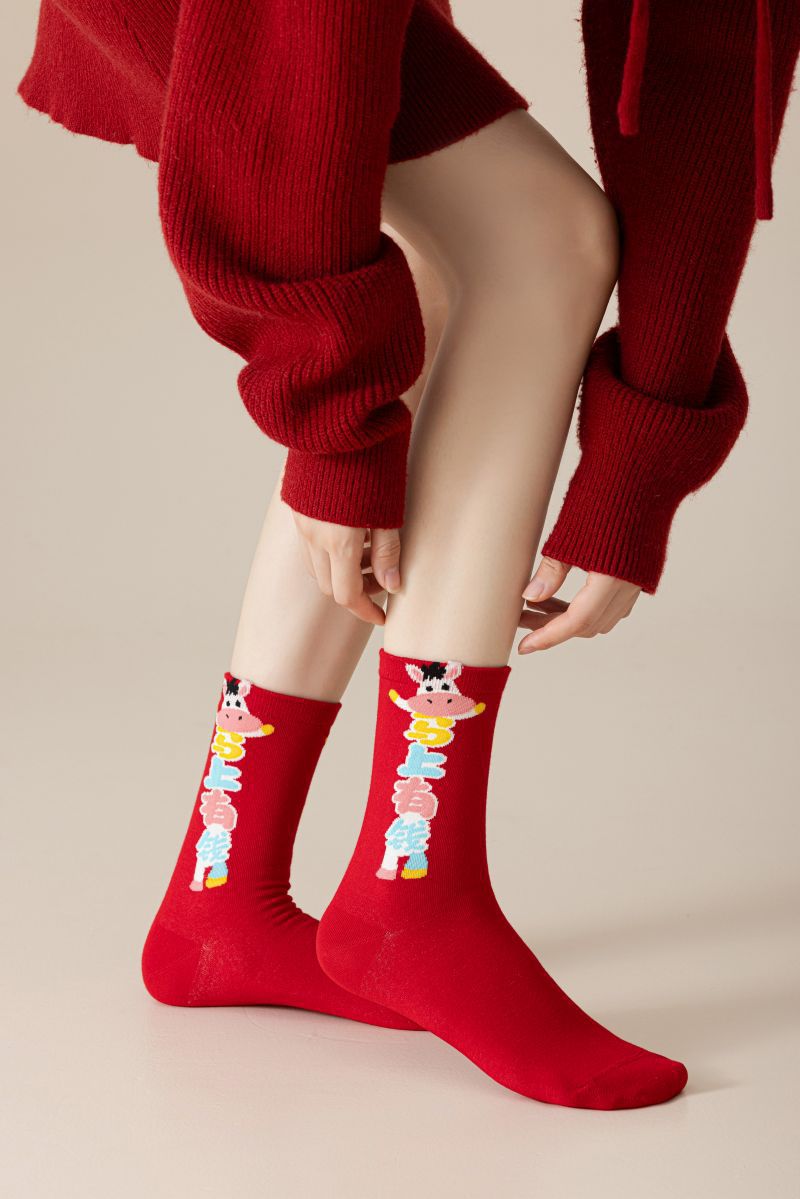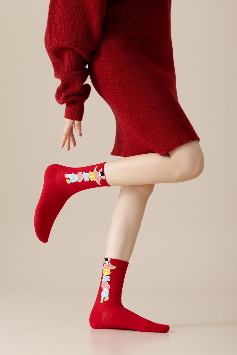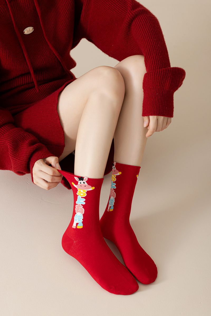 【Buy one, get three】Red Socks for Women in the Year of the Horse Autumn Winter Mid-Calf Socks