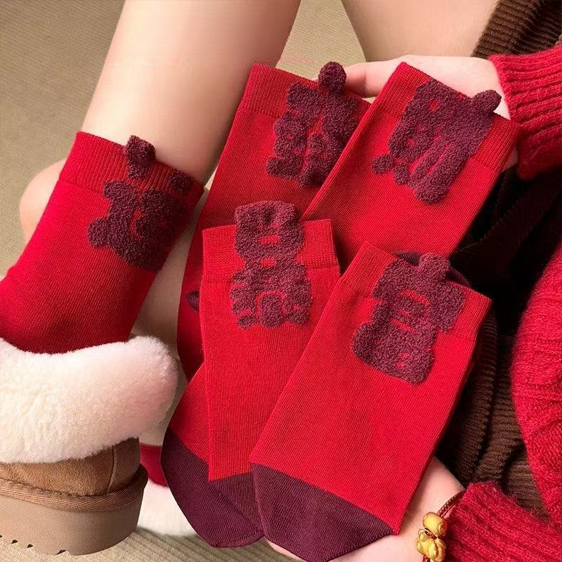 【Buy one, get three】Zodiac Year Red Socks for Women Festive Red Seamless