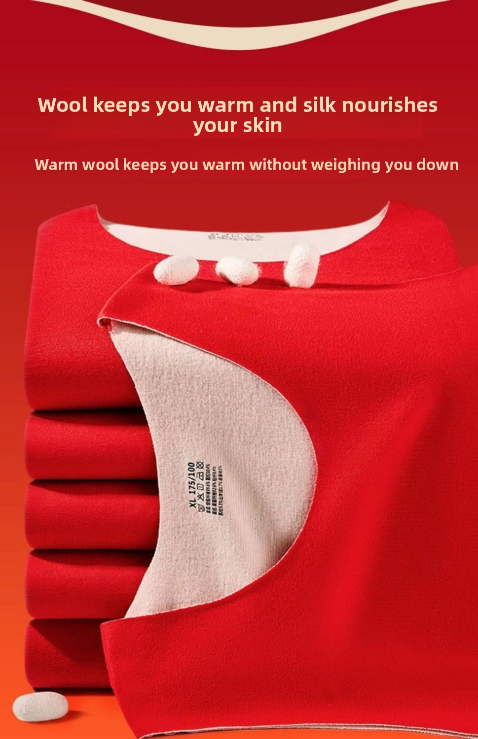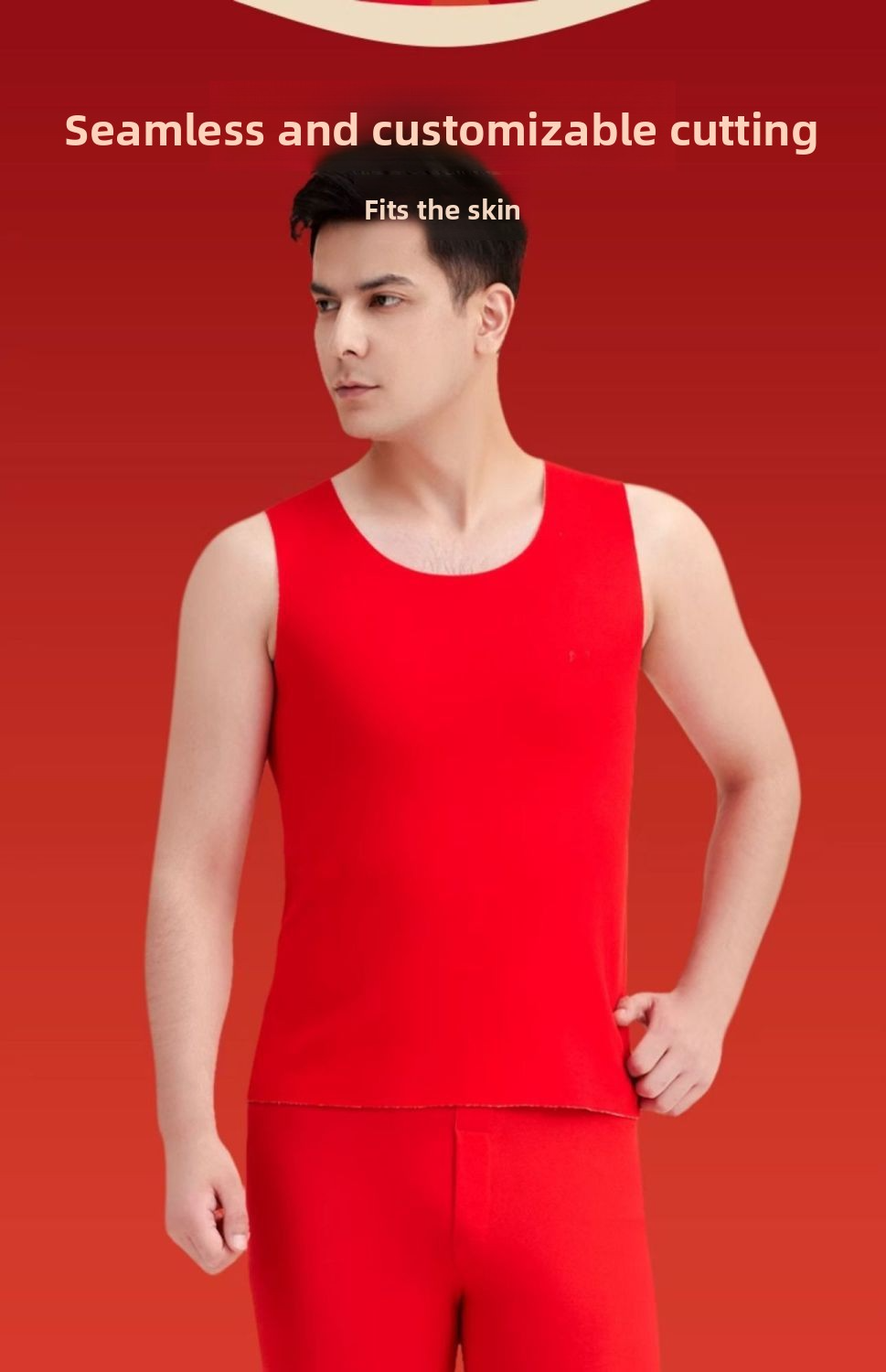 Couple Autumn Winter Bright Red Zodiac Year Vest Silk Wool De Rong Thermal Self-Heating Underwear