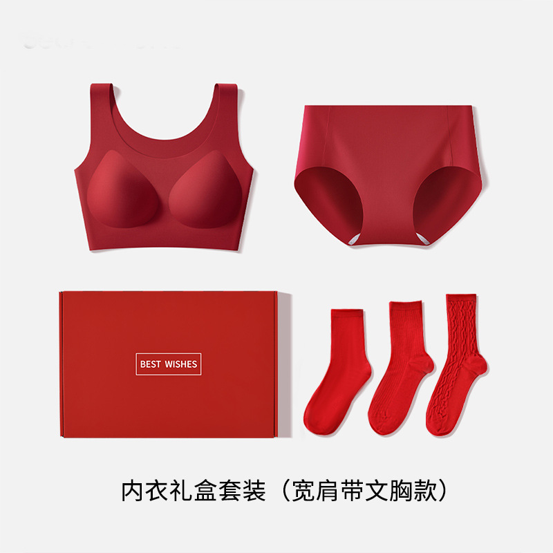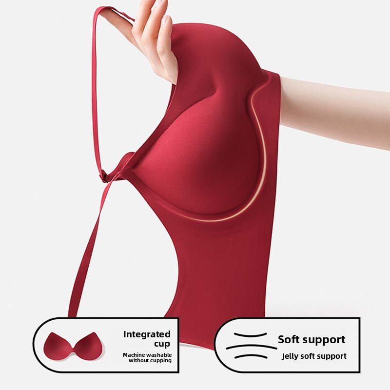 Red Seamless Bra Without Underwire Push-Up Bra for Zodiac Year Wedding Festive