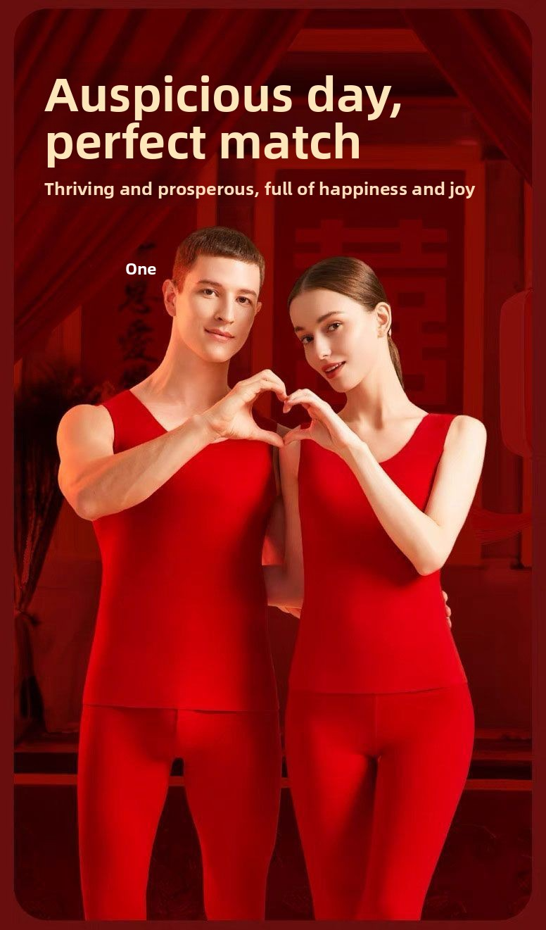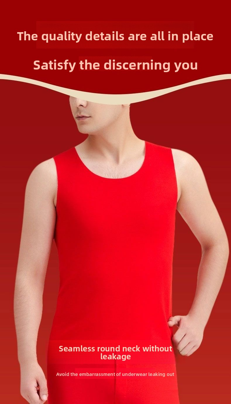 Red Thermal Vest with Wool and Silk, Seamless for Men and Women