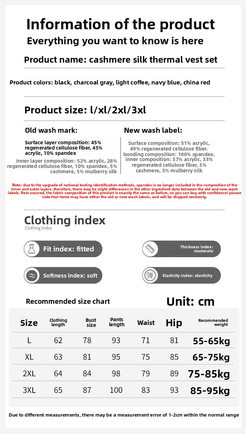 Silk Cashmere Thermal Underwear Vest for Men, Fleece-Lined and Thickened