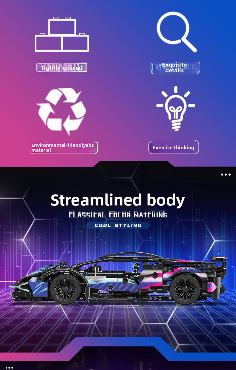 Electroplated Purple Lamborghini Supercar 1314PCS [Remote Control Lighting + Dynamic Version]