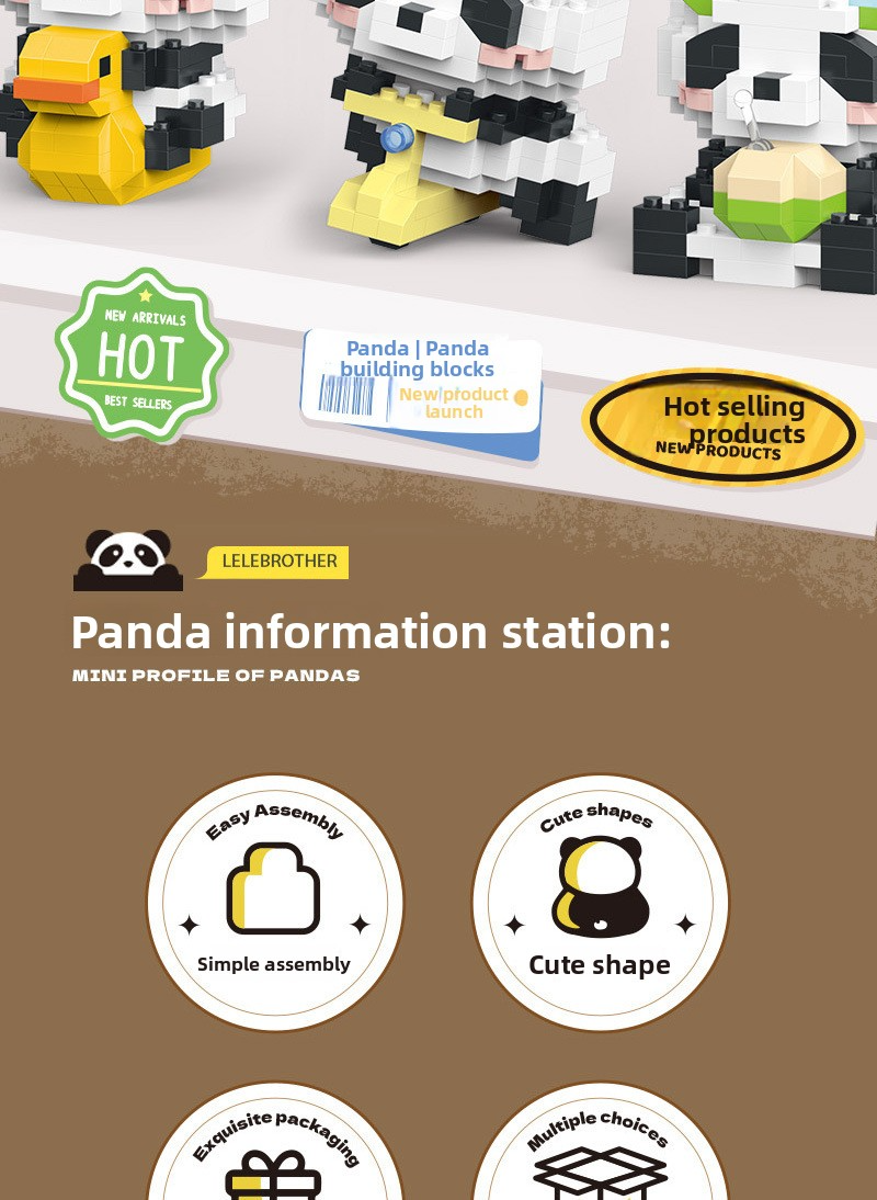 Panda Huahua, Fubao, Menglan: Kids' Micro-particle Puzzle Blocks (Gift/Prize for Students)