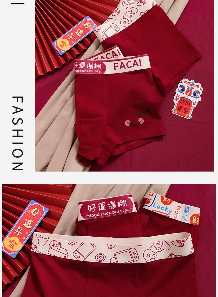Good Luck Red Underwear Men's Boxer Briefs Good Luck Pure Cotton Zodiac Year Underwear Boxer Shorts Men's Comfortable