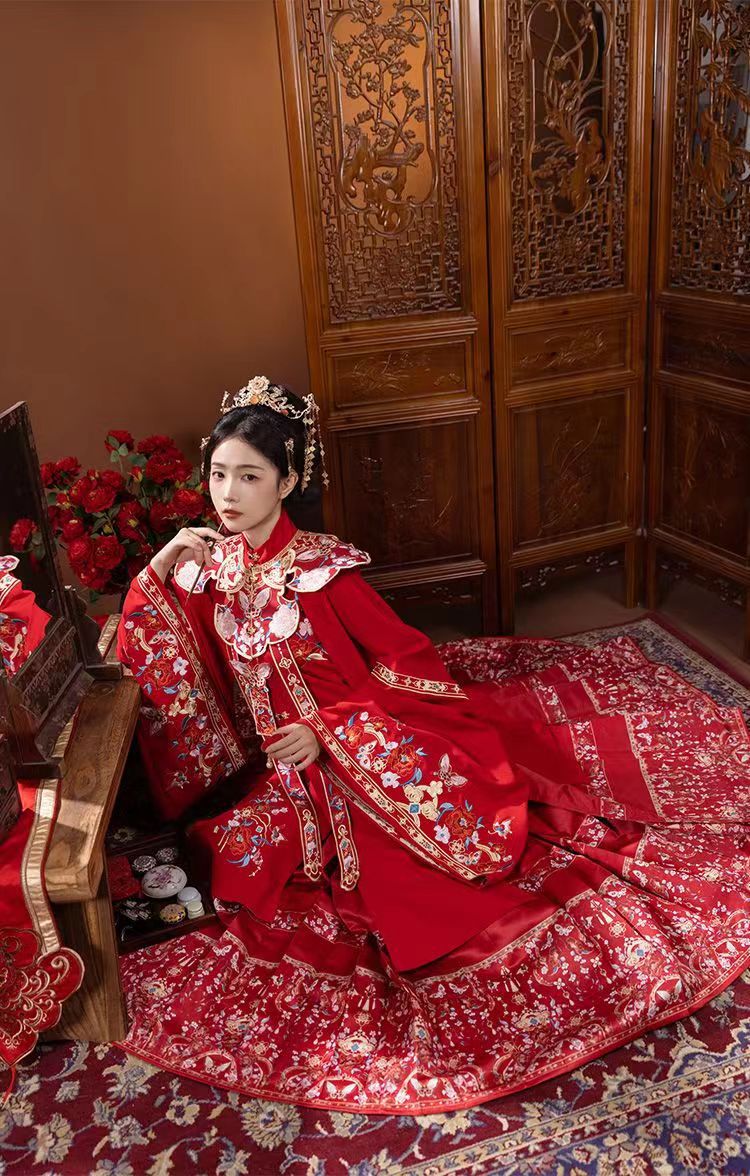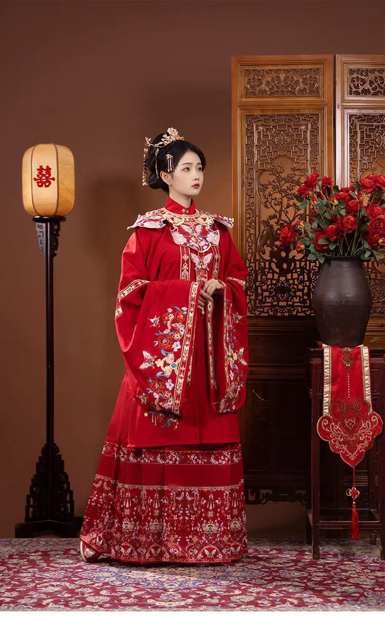 Heavy Embroidery Wedding Dress Ming Dynasty Style Horse Face Skirt