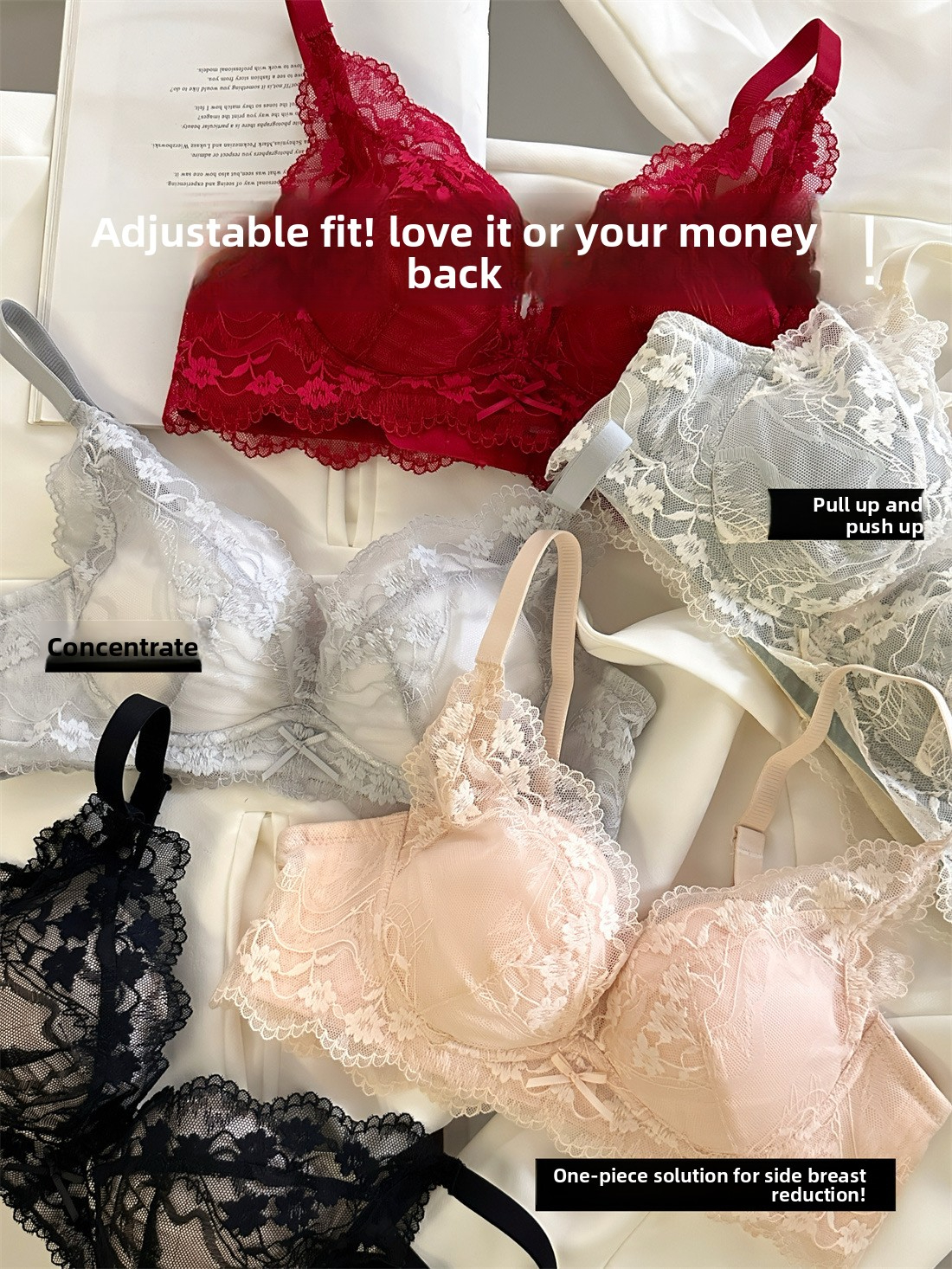 Red Bra Push-Up Side Breast Collection Bra for Women