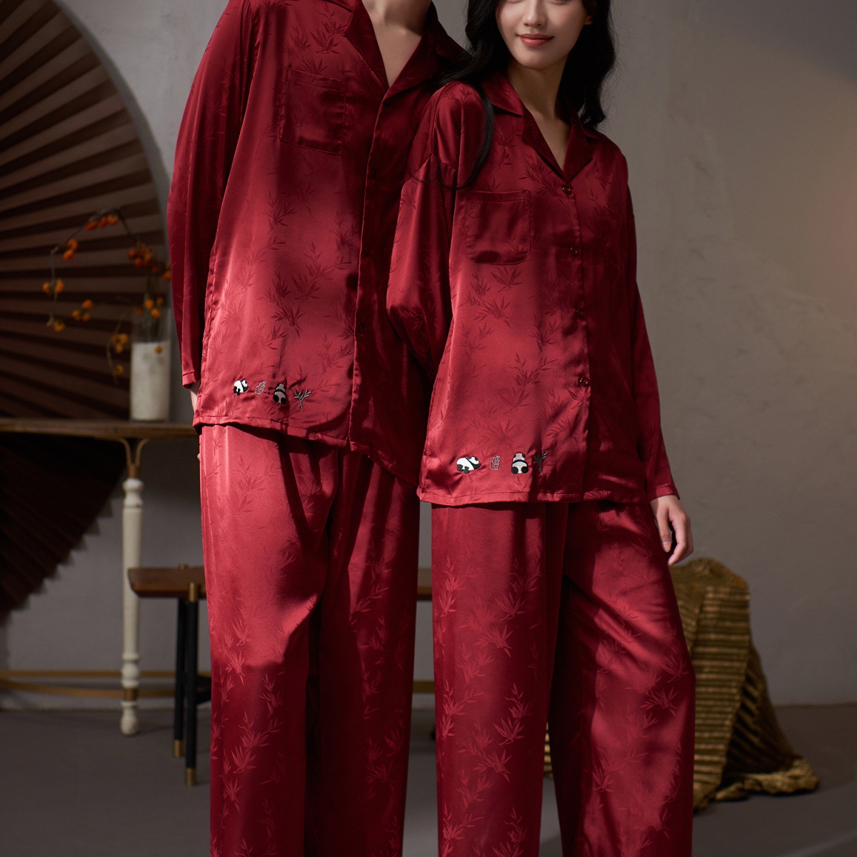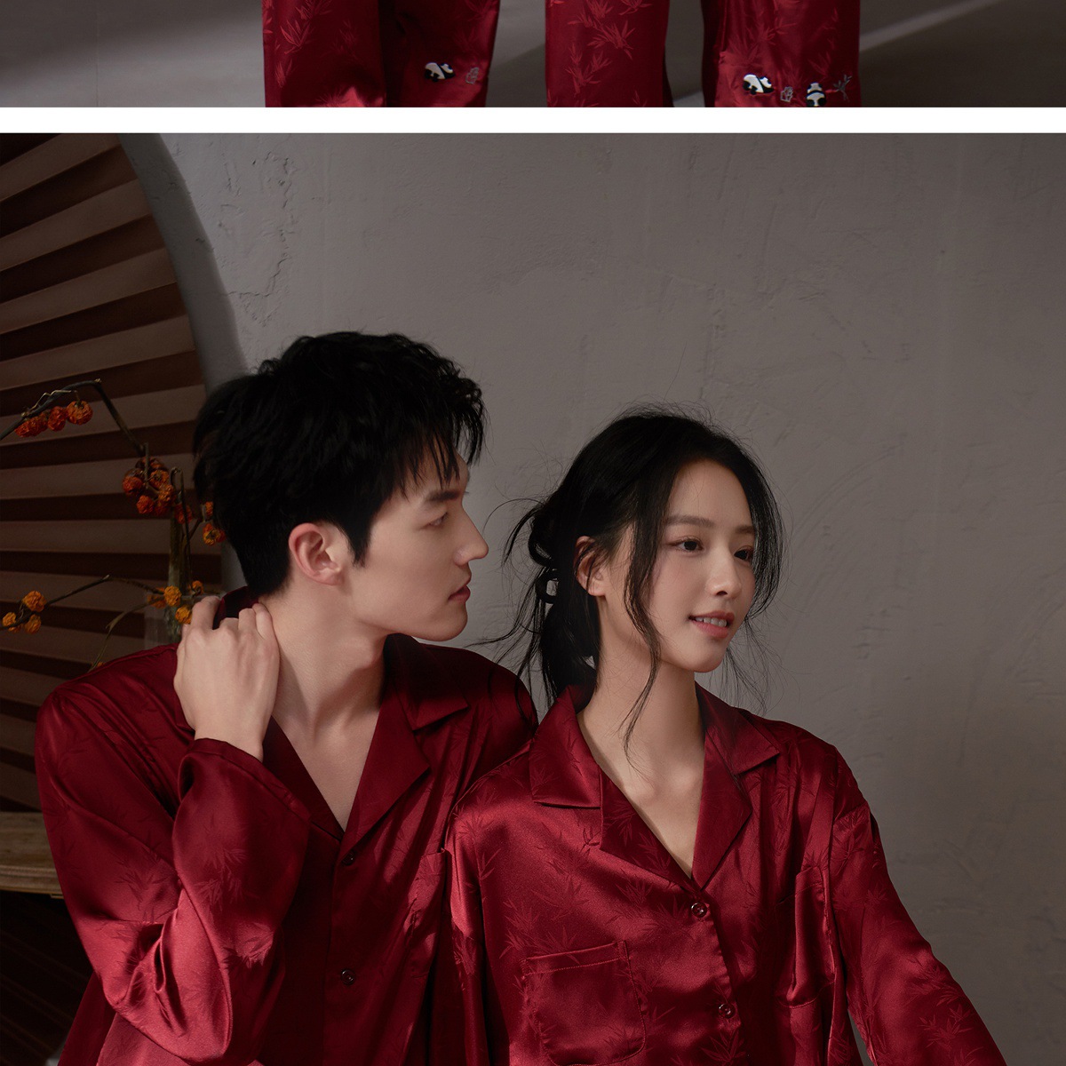 Red Home Clothes Ladies Satin Pajamas Couple Set