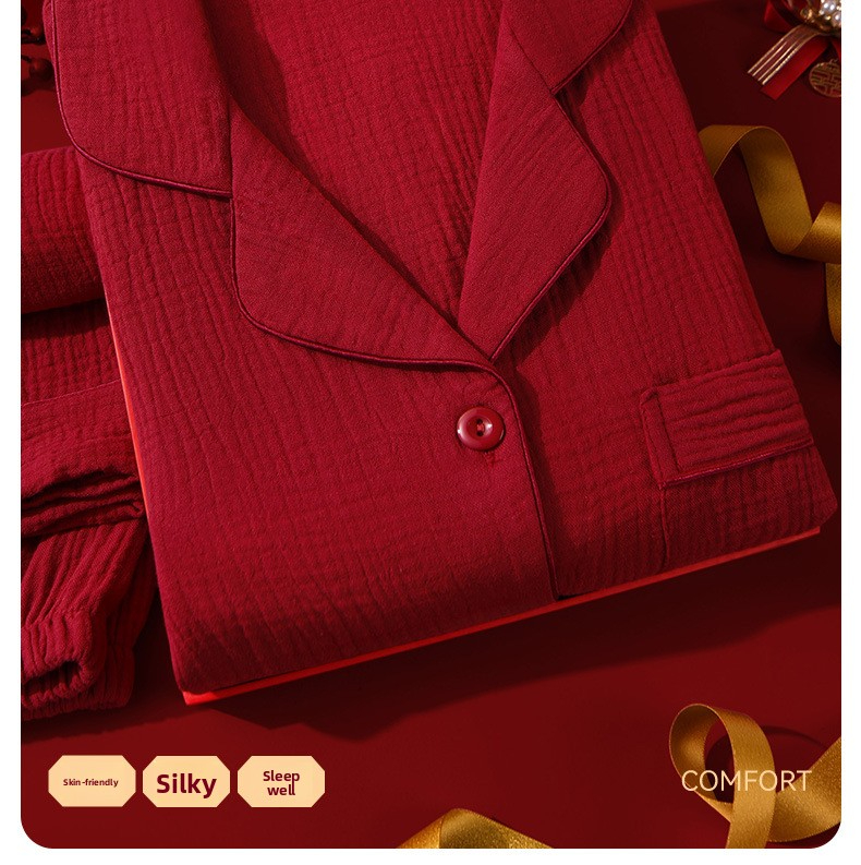 Red Set Pajamas Men and Women Skin Friendly Soft Combed Cotton Home Clothes