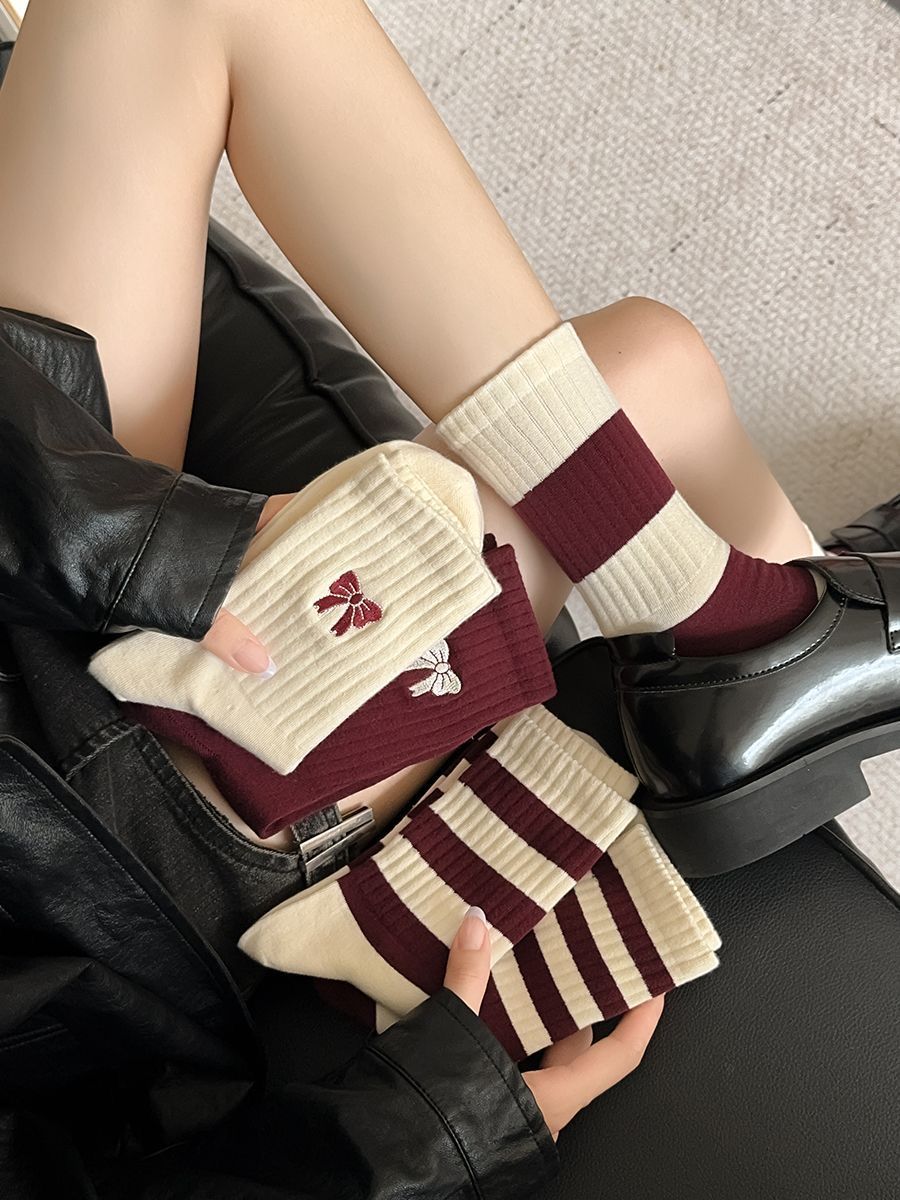 [Buy one, get three]Red Socks Women's Autumn and Winter Sports and casual All-match