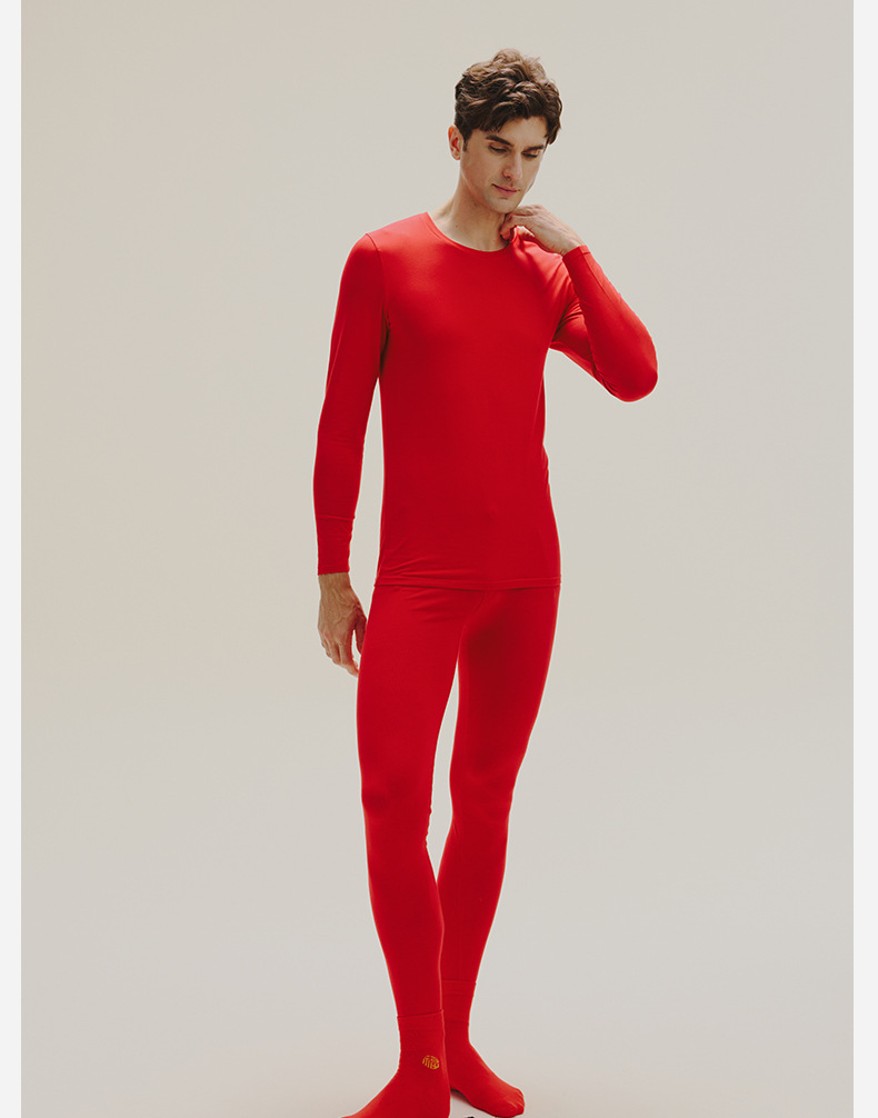 Red Thermal Underwear Set for Men Long Johns