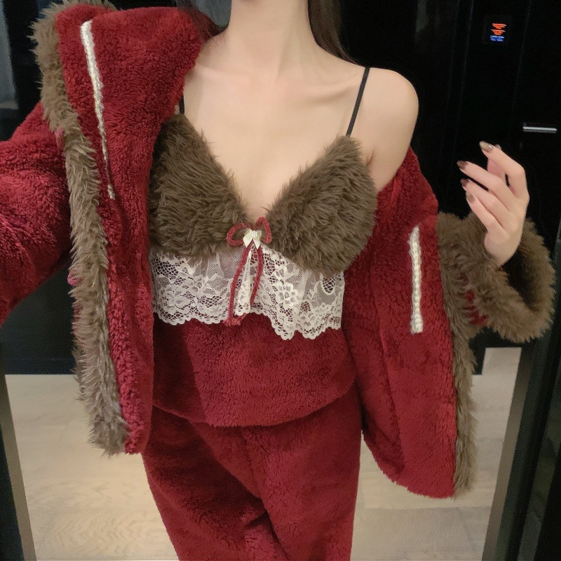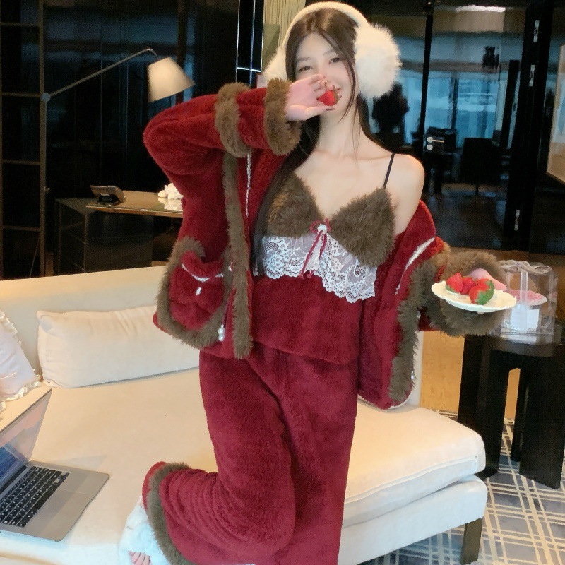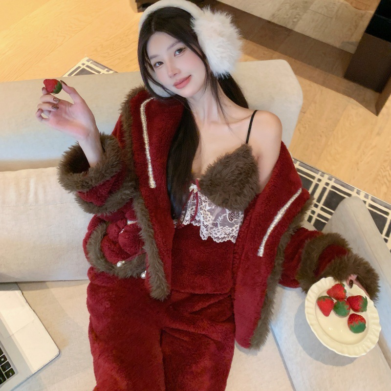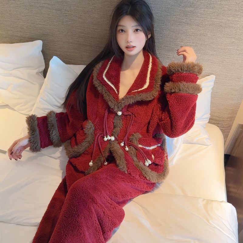 Red Thickened Pajamas Can Be Worn Outside Home Clothes Set