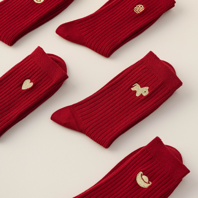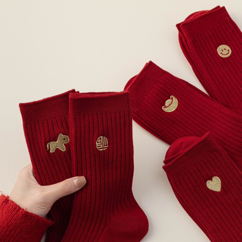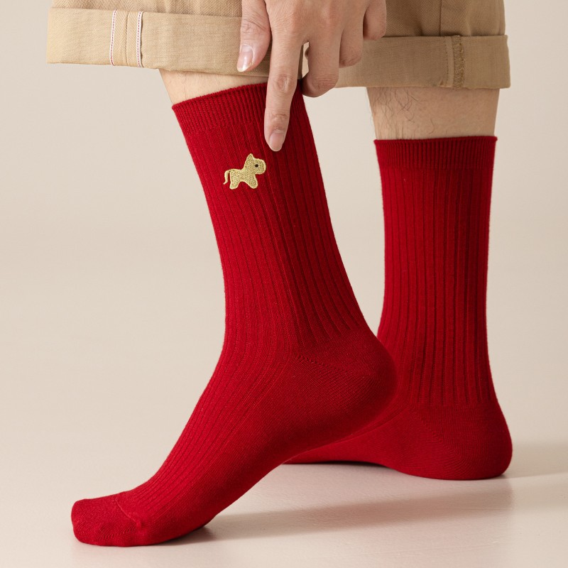 【Buy one, get three】Zodiac Year of the Horse Red Socks Men's Cotton Socks