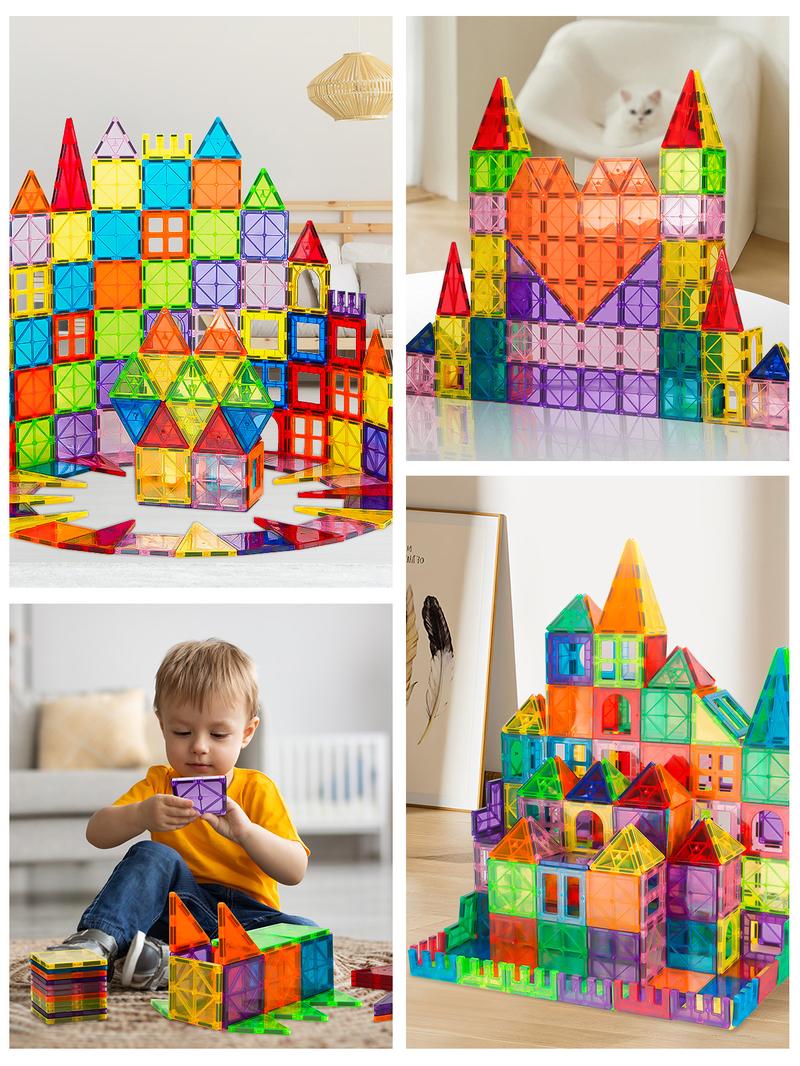 【Safe & Durable Strong Magnets】The magnet toys are made of non-toxic ABS plastic material which is safe and durable, the large strong magnets are solid enough to support heavy and tall construction without collapse, and the sealed rivets on the rounded-edges keep the magnetic building tiles from breaking. You can rest assured that your kids are only playing with the best and safest toddler toys on the market.